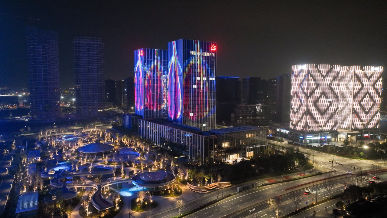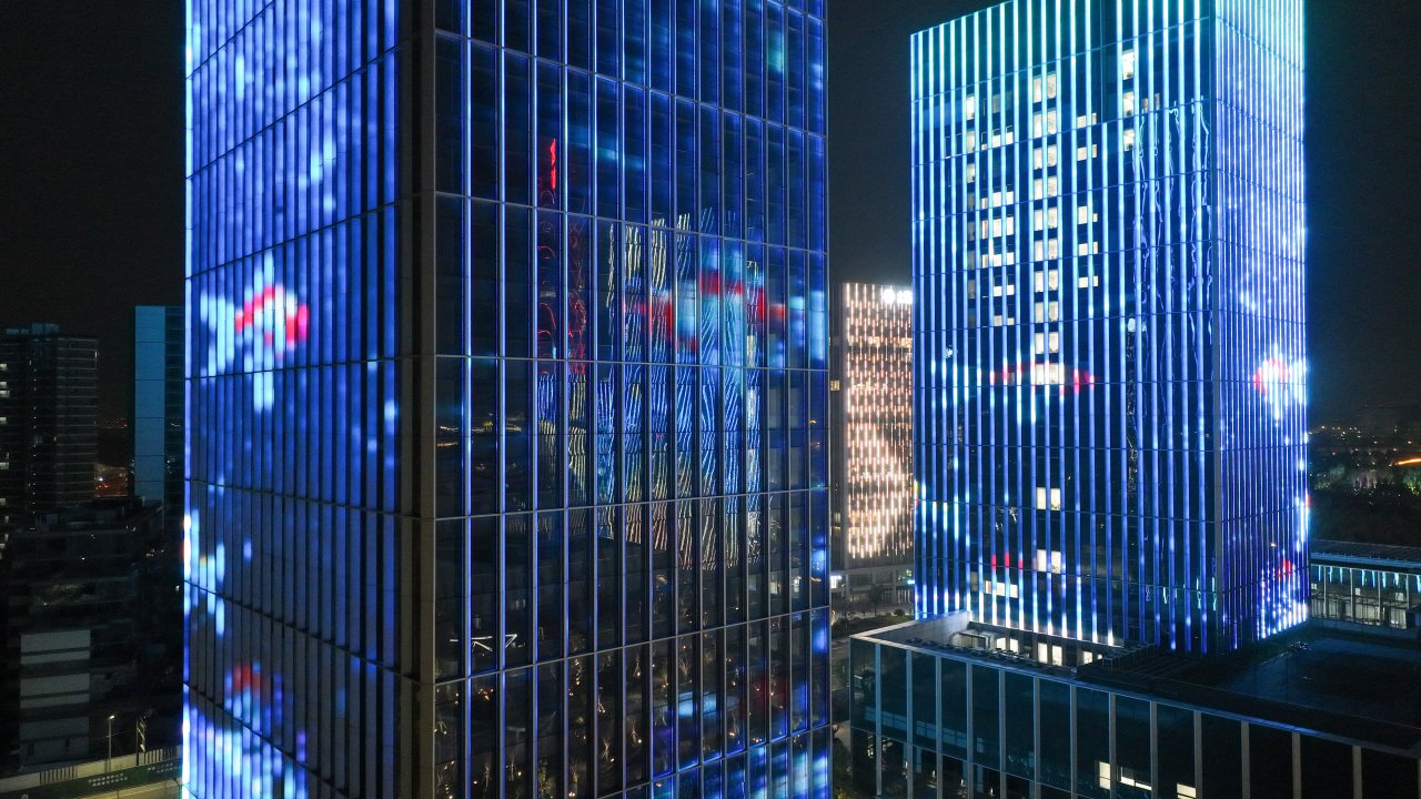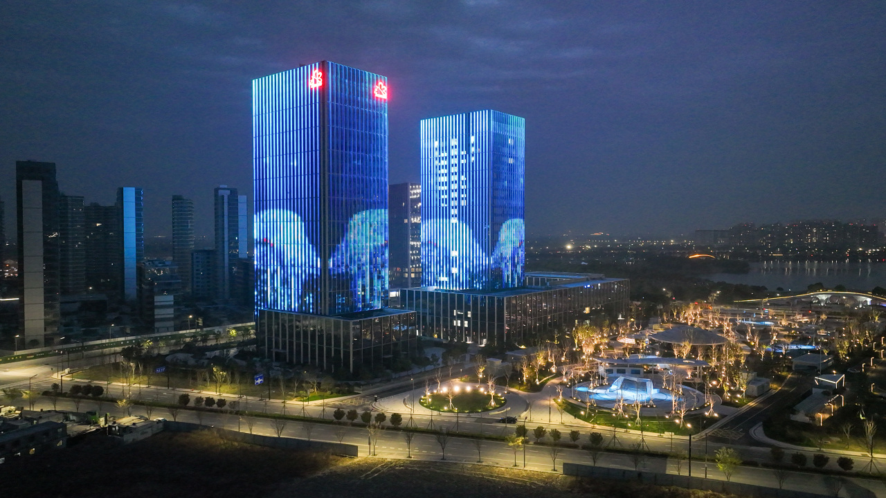 工程目的:为了提升桐昆集团总部大楼的夜间景观效果,突出其建筑特色和企业形象,同时节约能源和保护环境,采用了泛光照明的方式对建筑外立面进行灯光设计和施工。