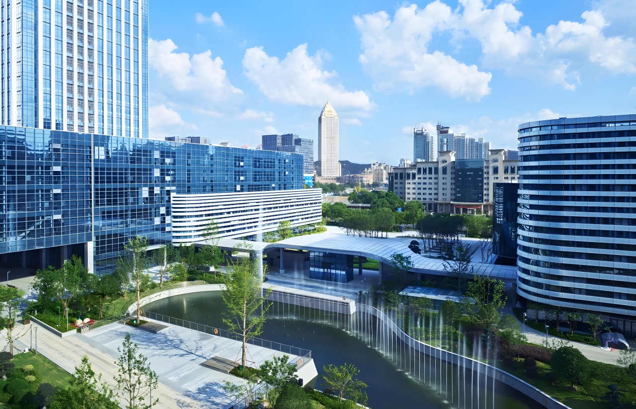项目规模:室外景观面积约为3.5万平方米,包括主入口广场、中央水景广场、南侧绿化带、北侧绿化带等四个分区。
