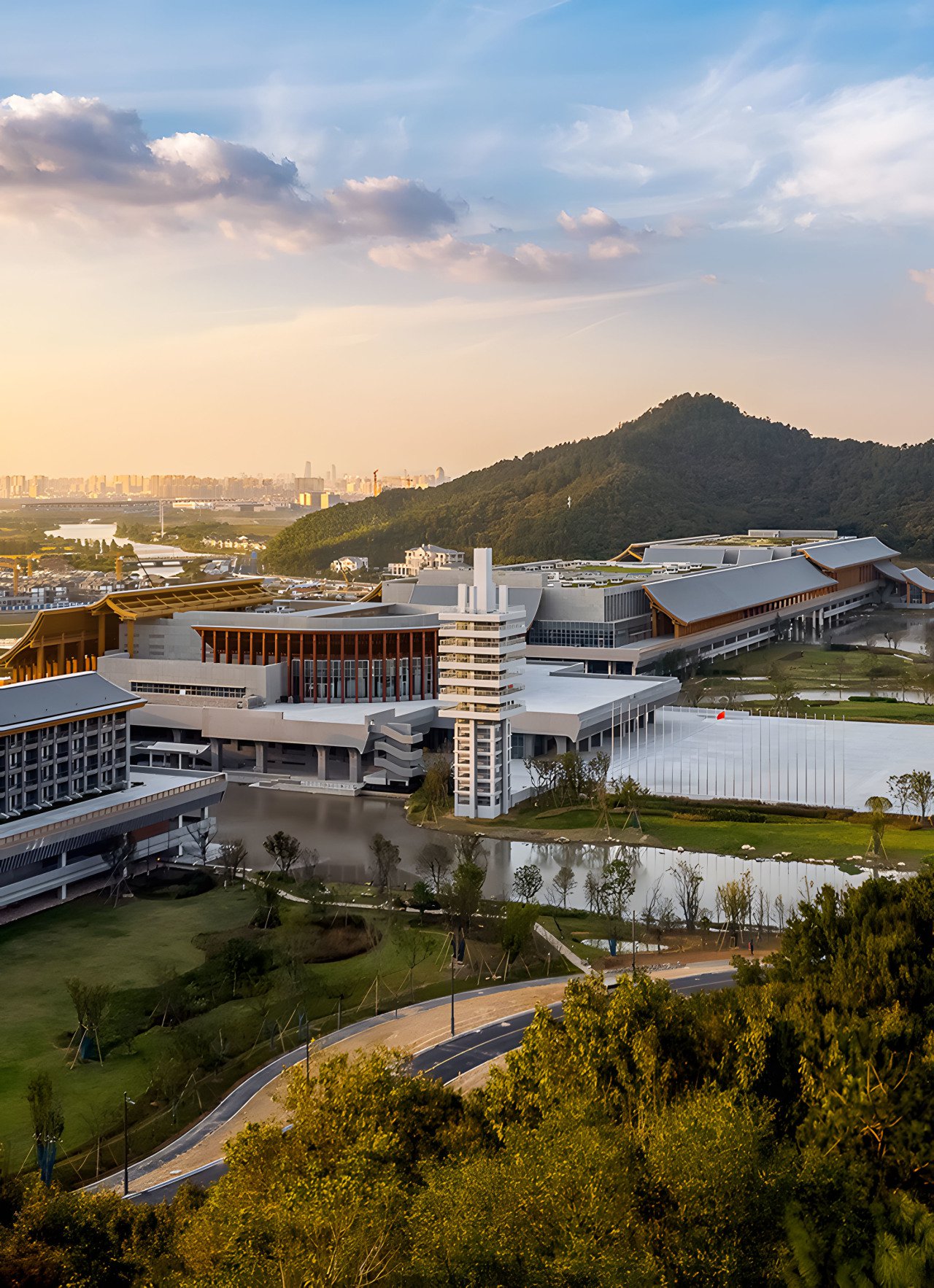 宁波国际会议中心项目园林景观工程是一项以“稻田与廊桥”为主题的设计,旨在打造一个集会议、展览、商务、休闲、文化等功能于一体的国际化综合体,同时展现宁波的地域文化和生态特色。