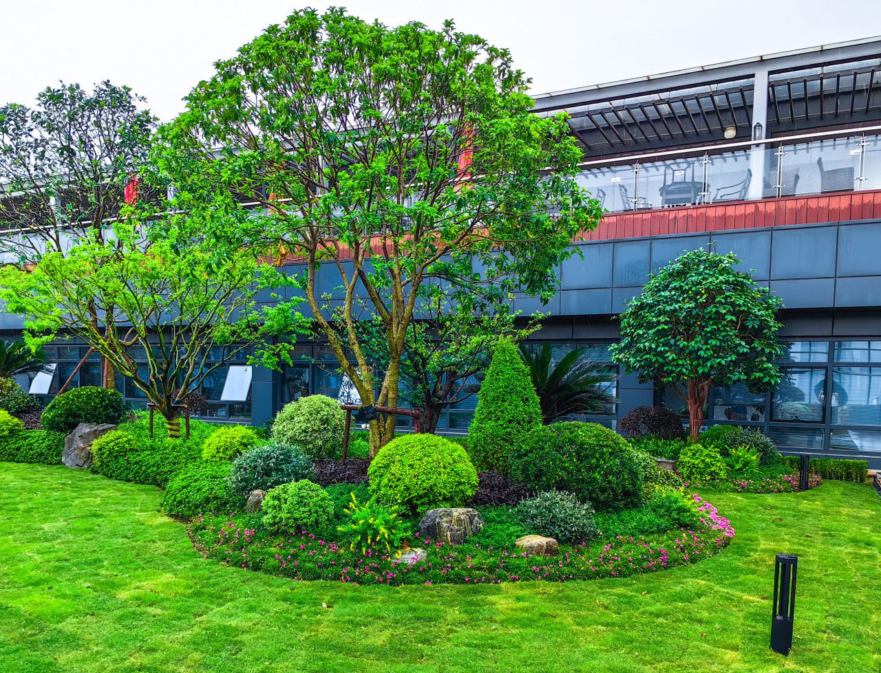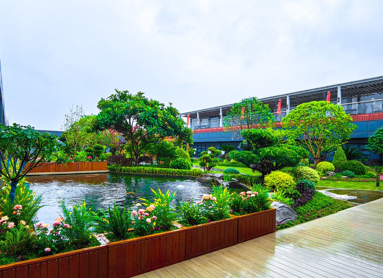 浙江健盛集团办公露台花园不仅是一处美丽的景观,也是一处展示企业文化和社会责任的平台。花园采用了节水灌溉、太阳能发电等环保技术,体现了企业对绿色发展的理念和实践。