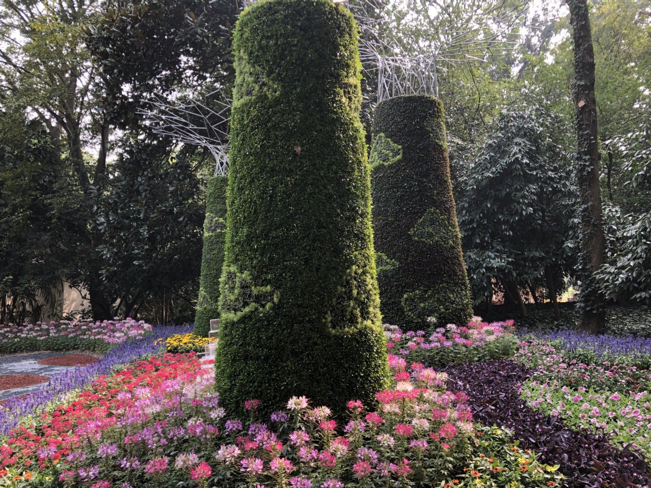 这次展览分为室内展区和室外展区,室内展区包括插花、盆景、摄影和新优园林植物品种等四个部分,共展出300多件作品。