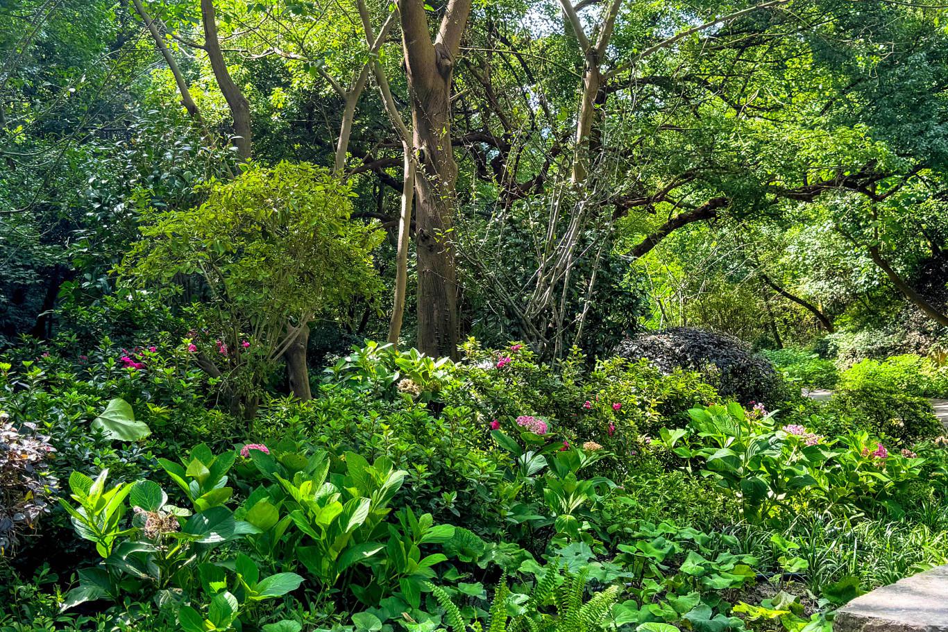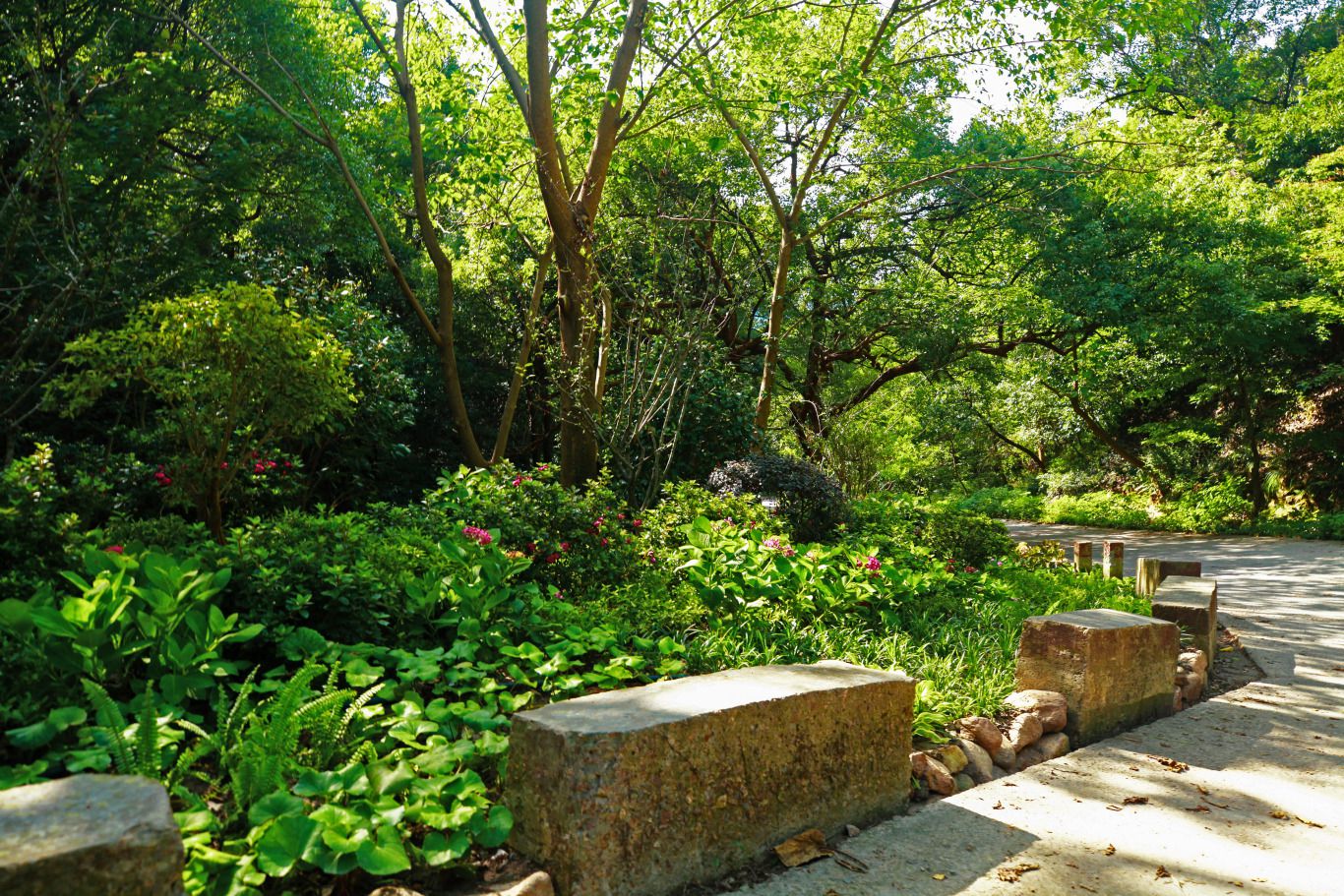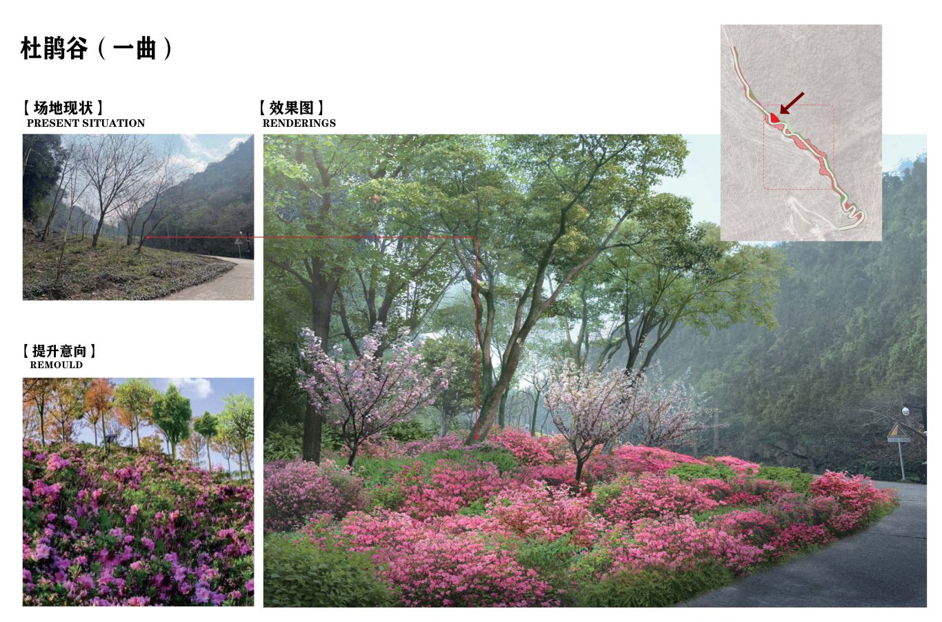 两处试验段节点的完成,不仅为后续的大规模施工提供了宝贵的经验与参考,更是在视觉与感官上为市民与游客呈现了一幅幅生动的自然画卷。入口段第一段节点巧妙地将竹林与现有植被相结合,创造出“一念一清静”的通幽之感,引领着“上山者”步入一段心灵净化之旅。而杜鹃谷的设计,则以多个品种与规格的杜鹃为核心,辅以八仙花、肾蕨、玉簪等耐荫植物,以及垂丝海棠、紫薇等开花亚乔,形成了多层次的植物空间,既保留了自然野趣,又增添了丰富的观赏性与生态多样性。
