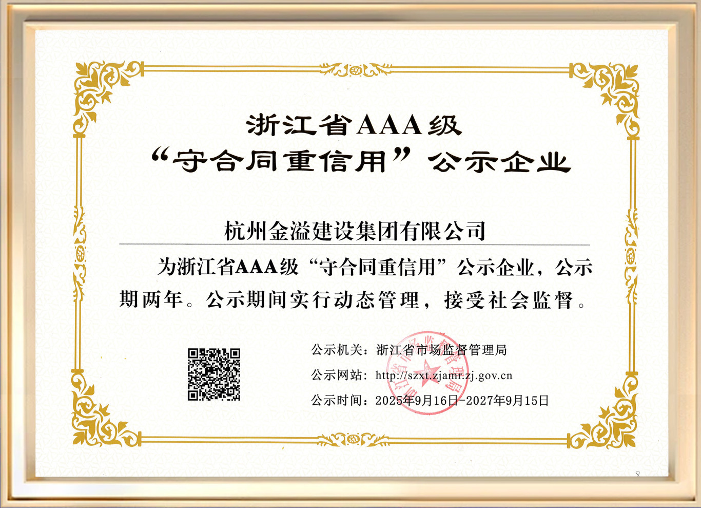 自2011年首次荣获该荣誉以来,金溢建设集团始终将“诚信为本、质量为先”的经营理念深深烙印在企业发展的每一步中。